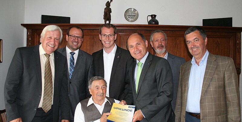 Im Jubiläumsjahr "70 Jahre NÖAAB" werden die Mitglieder vor den Vorhang geholt, die dem NÖAAB seit mehr als 60 Jahren die Treue halten. Aus Anlass des Jubiläumsjahres besuchte NÖAAB-Landesobmann LH-Stv. Mag. Wolfgang Sobotka das älteste lebende Mitglied. Der am 6.3. 1911 geborene Leopold Kriegbaum war lange Jahre Hauptschuldirektor in Amstetten und lebt seit vielen Jahren in St. Peter/Au. Landesobmann Wolfgang Sobotka, LT-Präs. Johann Heuras, NÖAAB Landesgeschäftsführer Bundesrat Bernhard Ebner und Bgm. Johannes Heuras gratulierten dem ältesten Mitglied zu 65 Jahren Mitgliedschaft im NÖAAB mit einer Urkunde und der "70-Jahr-Chronik des NÖAAB".
