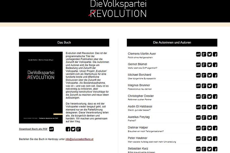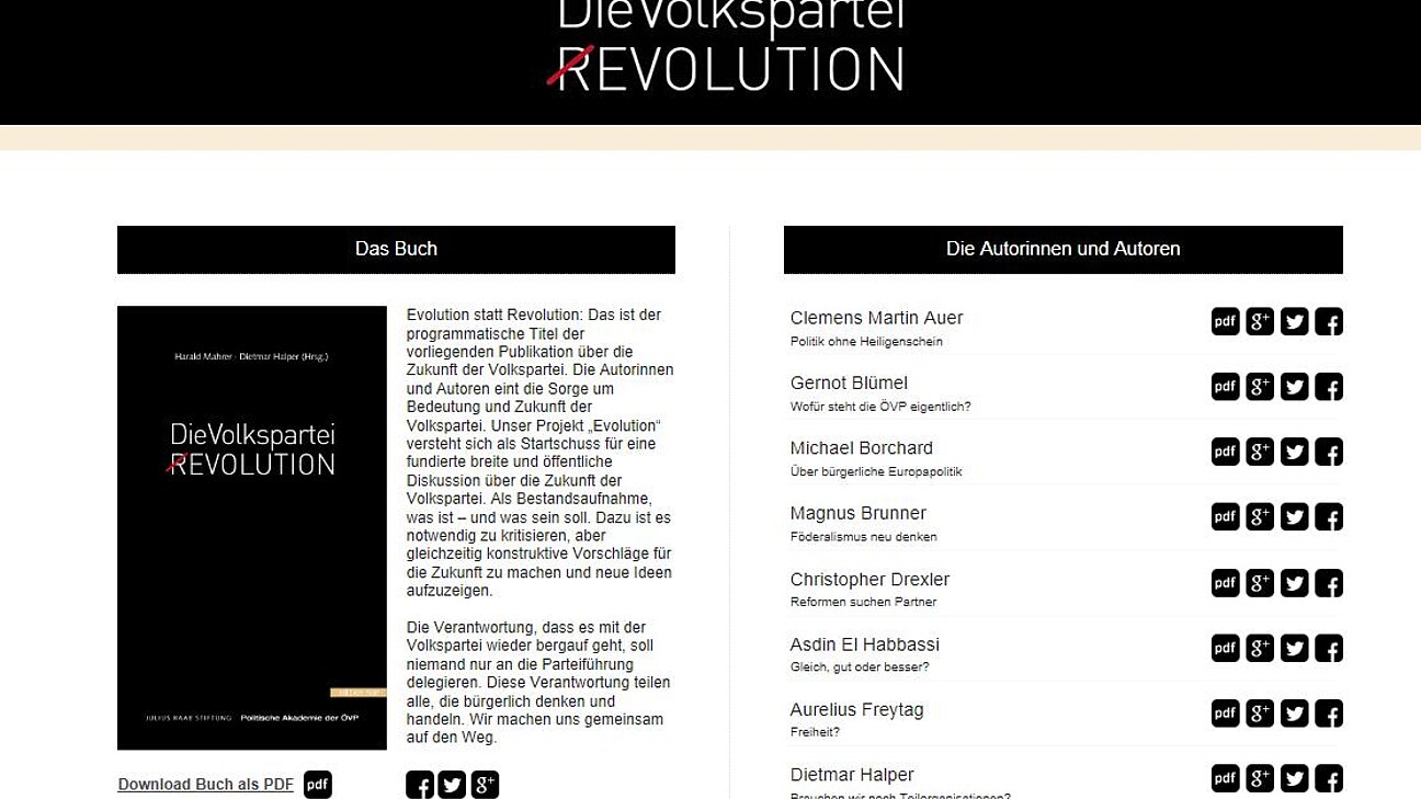 Unter dem Titel „Evolution Volkspartei“ präsentieren Dietmar Halper und Harald Mahrer von Politischer Akademie und Julius Raab Stiftung einen Sammelband. Es geht um die Zukunft der „Volks-Partei“. Lukas Mandl schreibt über die Bedeutung von Vorzugsstimmen. Das Buch gibt es auch online, zum reinlesen – und zum mitmachen:
