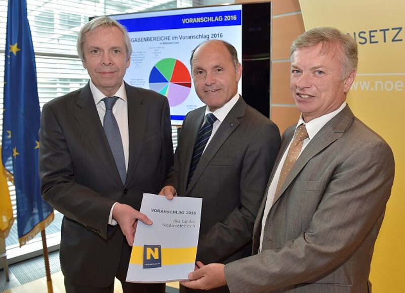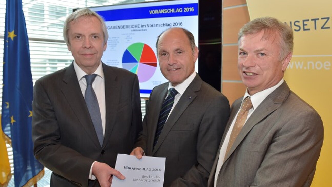 Das Landesbudget 2016 sieht Ausgaben in der Höhe von 8,17 Milliarden Euro und Einnahmen in der Höhe von 7,96 Milliarden Euro vor. Das Land Niederösterreich wird im kommenden Jahr um 92 Millionen Euro weniger ausgeben als heuer, das Defizit wird 2016 bei rund 214 Millionen Euro liegen.