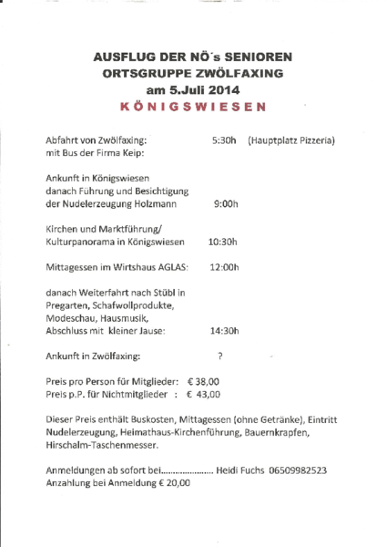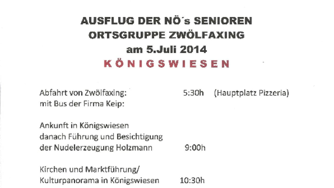 Ausflug der NÖ´s Senioren - Ortsgruppe Zwölfaxing am 5. Juli nach Königswiesen
