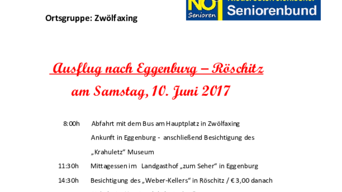 Ausflug nach Eggenburg – Röschitz am Samstag, 10. Juni 2017