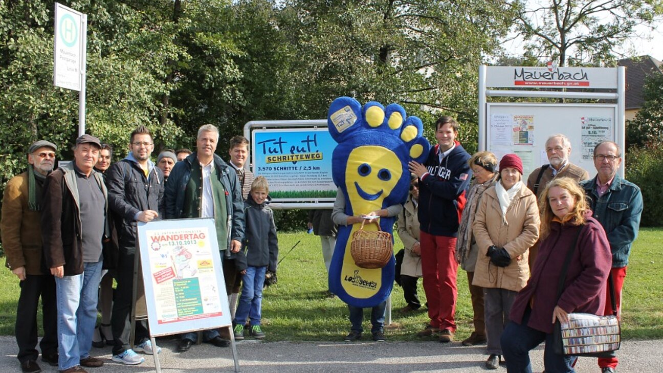 Zusammen mit dem Landtagsabgeordneten Lukas Mandl, dem geschäftsführendem Gemeinderat Matthias Pilter und der Spitze des Fremdenverkehrs- und Verschönerungsvereins Mauerbach eröffnete Mauerbachs Bürgermeister Peter Buchner offiziell den „tut gut" Schritteweg Mauerbach. Einige wanderlustige Mitbürgerinnen und Mitbürger fanden sich zum ersten Gang auf dem neuen Weg ein. Der „tut gut" Schritteweg startet bei der Postgarage und dient gleichzeitig als Zubringer zu den drei „tut gut" Wanderwegen Mauerbachs. Diese werden im Rahmen des Wandertages des Fremdenverkehrs- und Verschönerungsvereins Mauerbach am 13. Oktober 2013 eröffnet. „Gut für Körper, Geist und Seele" Der geschäftsführende Gemeinderat Matthias Pilter erklärt: „Beide ‚tut gut' Projekte schaffen Anreize, das persönliche ‚Schrittekonto' der Bürgerinnen und Bürger zu erhöhen." - Landtagsabgeordneter Lukas Mandl, der auch im diesjährigen Sommer wieder die Strecke von Hinterbrühl nach Mariazell zu Fuß zurückgelegt hat, ergänzt: „Das ist nicht nur gut für die körperliche Gesundheit, sondern auch für Geist und Seele." Außerdem sind die „tut gut" Projekte Maßnahmen zur Belebung des Tourismus in Mauerbach. Die Wanderkarten der „tut gut" Wege werden an mehr als 80.000 Abonnentinnen und Abonnenten in ganz Niederösterreich verschickt. Der Schirmherr der Initiative „tut gut" ist Landeshauptmann-Stellvertreter Wolfgang Sobotka. Ganz bewusst wurden die Wege so geplant, dass der Ausgangspunkt der drei „tut gut" Wanderwege Mauerbach beim Parkplatz der Kartause Mauerbach ist. So kann das Sportliche mit dem Kulturellen verbunden werden. Kartausencafé ist Info-Drehscheibe Als „tut gut" Wanderwirt konnte das Kartausen-Café Mauerbach gewonnen werden. Dort liegen die Wanderkarten auf. Dort können Informationen zu den Wegen erfragt werden. Und man ist dort offen für Anregungen zu Verbesserungen der Wege. Die Postgarage Mauerbach wurde bewusst als Startpunkt für den „tut gut" Schritteweg gewählt. So seht dieser Weg auch für Benützerinnen und Benützer der öffentlichen Verkehrsmittel als Verbindungsweg zu den „tut gut" Wanderwegen zur Verfügung.