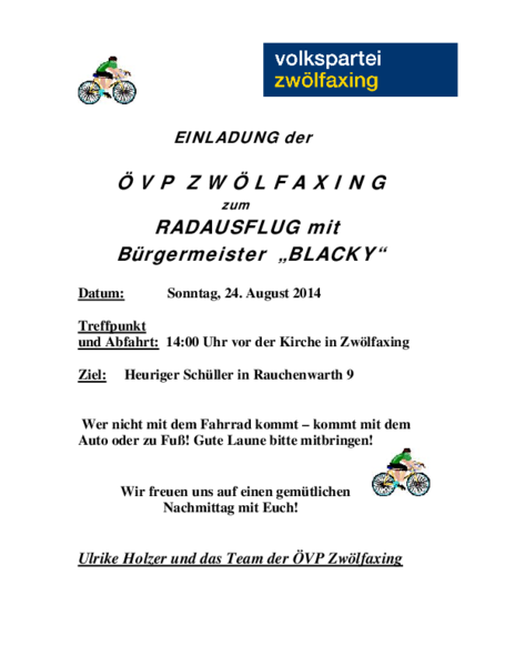 Treffpunkt und Abfahrt: 14:00 Uhr vor der Kirche in Zwölfaxing
