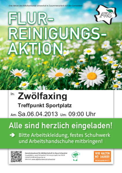 Auf Grunde der Witterung wird die Flurreinigung und Kompostaktion auf den 20. April 2013 verschoben.