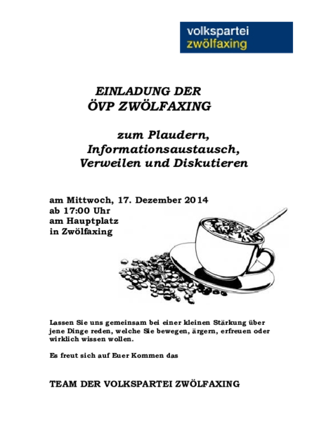 Informationsaustausch mit der ÖVP Zwölfaxing am Mittwoch, 17. Dezember 2014
