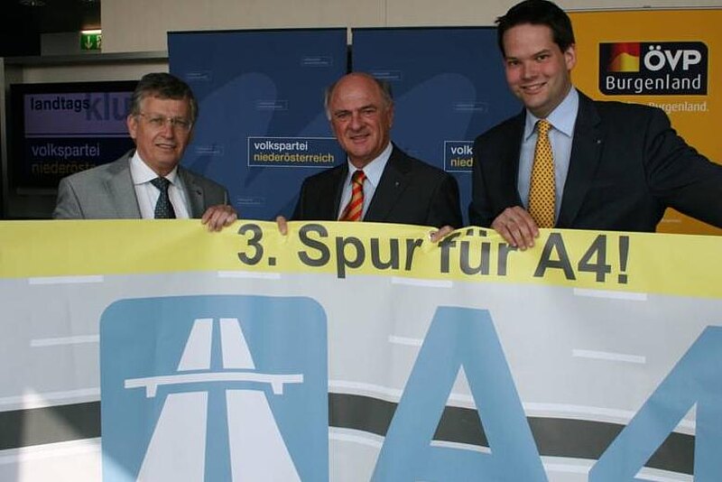 Landtagsabgeordneter Willi Eigner, Landeshauptmann Erwin Pröll und Landtagsabgeordneter Lukas Mandl sind seit Jahren im Einsatz für mehr Sicherheit auf der A4-Ostautobahn