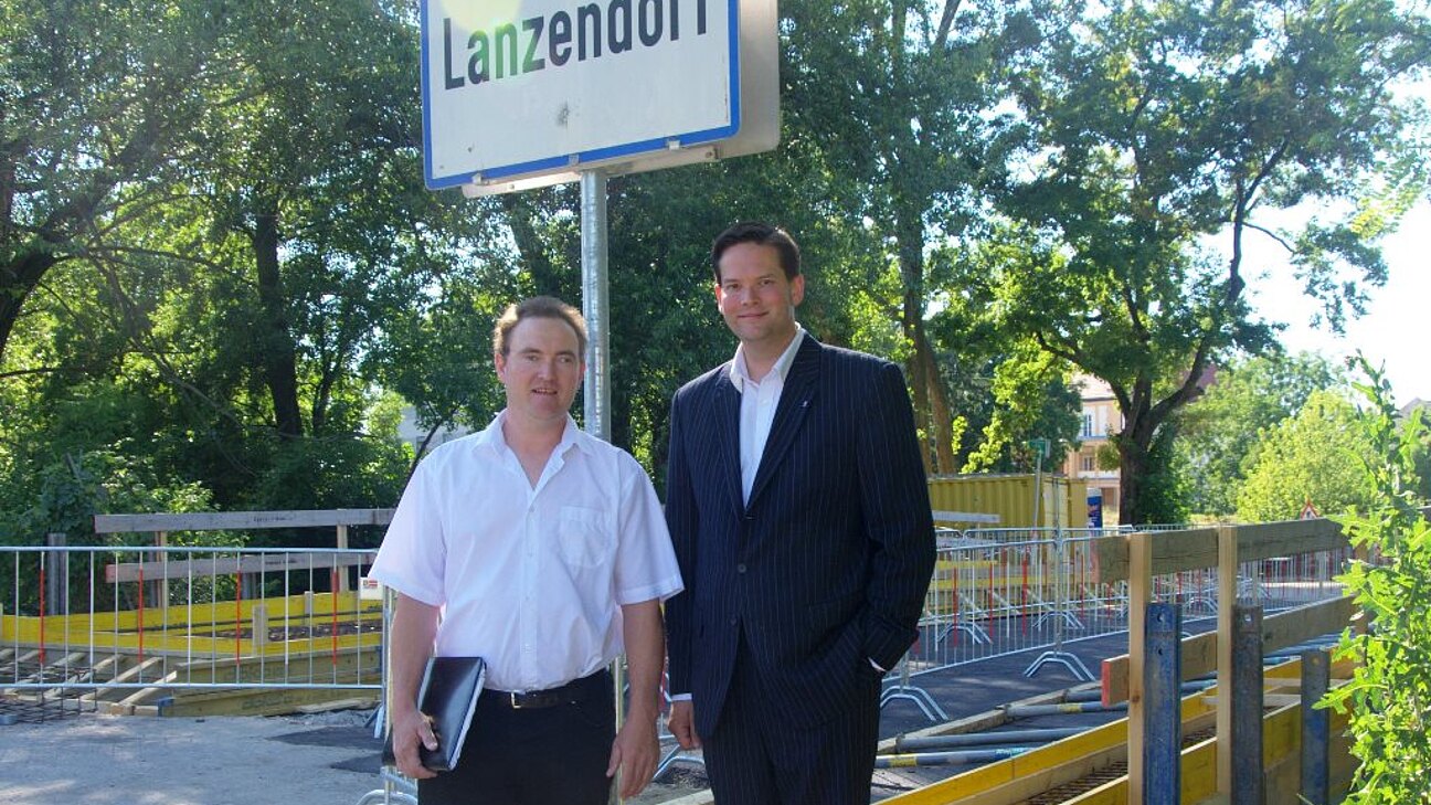 Die Lanzendorfer Mühlbachbrücke muss saniert werden. Das Land Niederösterreich trägt die Gesamtkosten dieser Maßnahme. Darüber informieren Landtagsabgeordneter Lukas Mandl und ÖVP-Gemeindeparteiobmann Gemeinderat Josef Schiefer. Die notwendige Umleitung der Fahrzeuge nimmt etwa sechs Wochen in Anspruch.