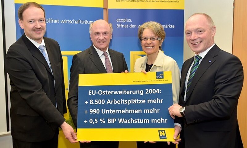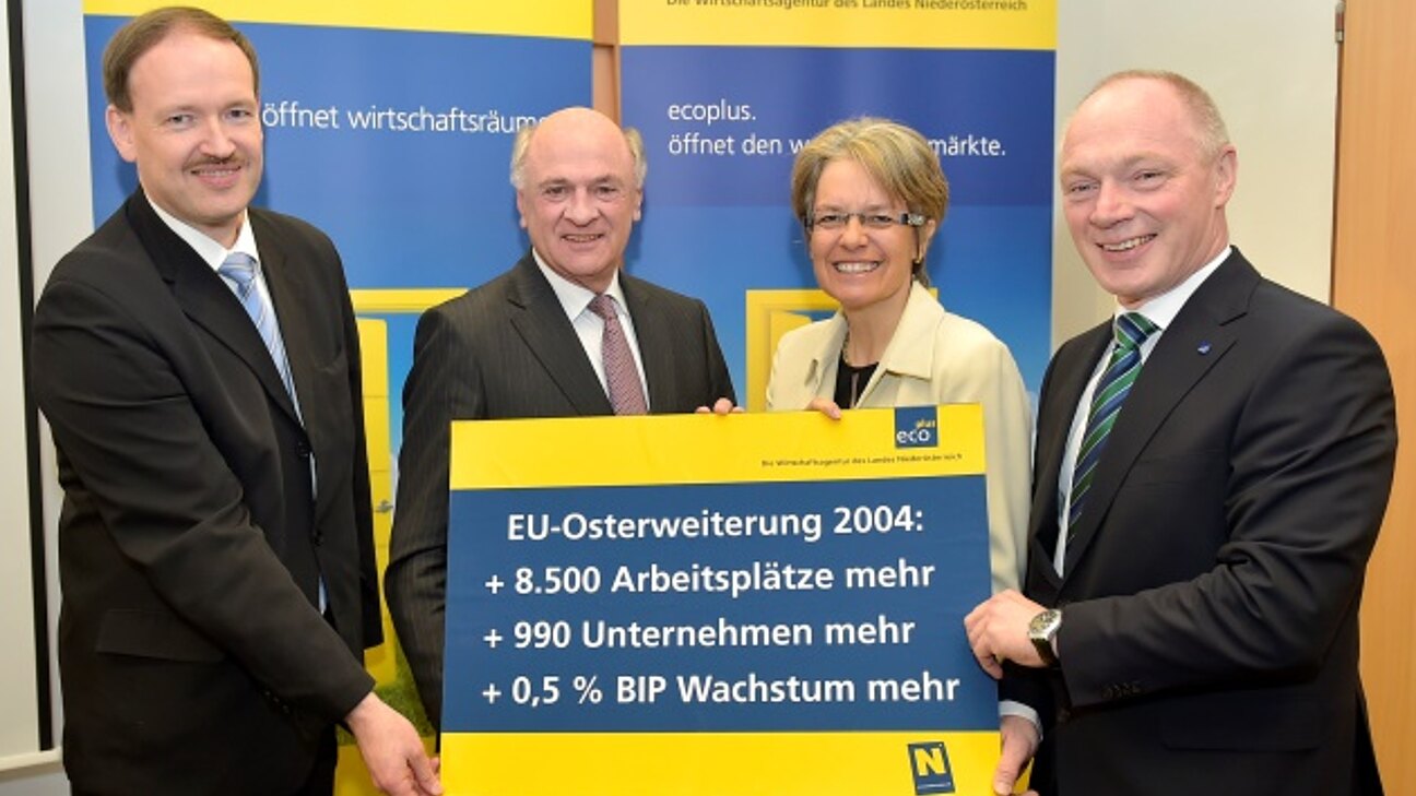 Welche messbaren wirtschaftlichen Effekte die EU-Osterweiterung auf Niederösterreich hatte bzw. hat, analysierte Dr. Christian Helmenstein in seiner Studie. Auf Sicht des letzten Jahrzehnts sei Niederösterreich "der Wachstumspol der Ostregion", so Helmenstein. So habe es etwa eine Verdreifachung der Auftragsbestände aus Zentral-und Osteuropa gegeben, informierte er. Märkte wie Polen und Rumänien würden für niederösterreichische Exporteure immer bedeutsamer werden: "Eine Milliarde Euro zusätzliches Exportvolumen bedeutet 11.000 zusätzliche Arbeitsplätze", betonte Helmenstein dazu.