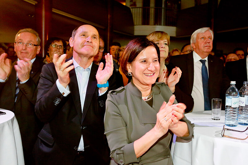 „Als ÖAAB tragen wir gesellschaftspolitische Verantwortung auf allen Ebenen. Vor allem in Niederösterreich sind unsere Funktionärinnen und Funktionäre stark vertreten. Ich freue mich immer nach Niederösterreich zu kommen“, betonte Innenministerin Mag. Johanna Mikl-Leitner. Österreich und die europäische Union befinden sich derzeit in einer herausfordernden Situation. „Wir wissen was zu tun ist: Bei der Steuerreform, der Mindestsicherung und jetzt beim Thema Asyl haben wir gezeigt, dass Politik mit Hausverstand die zukunftsweisende Alternative ist“, so Mikl-Leitner.