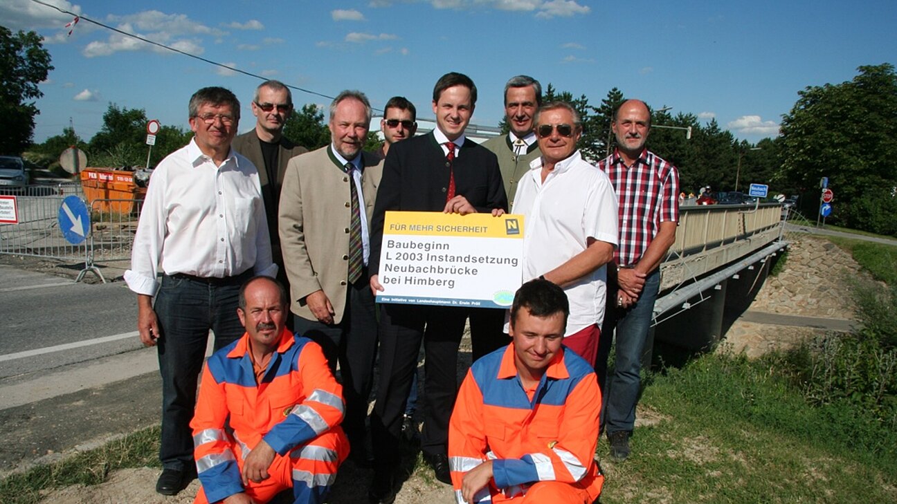 An der rund 30 Meter langen Brücke über den Neubach im Zuge der Landesstraße L 2003 in Himberg sind aufgrund ihres Alters - die Brücke wurde 1974 errichtet - im Laufe der Zeit massive Schäden entstanden. Um weitere derartige Zeitschäden zu vermeiden, hat sich der NÖ Straßendienst (Abteilung Brückenbau) jüngst entschlossen, die Brücke zu sanieren. Die Bauarbeiten wurden dieser Tage gestartet und werden binnen rund vier Monaten von der Firma Terrag-Asdag aus Gänserndorf durchgeführt. Die Gesamtbaukosten in Höhe von rund 230.000 Euro werden zur Gänze vom Land Niederösterreich getragen. Die Schwerpunkte der Instandsetzung der Brücke sind das Neuaufbringen der Tragwerksabdichtung, das Erneuern der bituminösen Beläge im Fahrbahnbereich, die Erneuerung des Gehsteiges, die Betoninstandsetzung der Tragwerksuntersicht und der Widerlager sowie der Austausch des nicht mehr normgerechten Alugeländers. Für die Instandsetzung des Brückendecks ist eine halbseitige Sperre erforderlich, eine verkehrsgesteuerte Ampelanlage minimiert die Wartezeiten im Baustellenbereich, der Einbindungsbereich der Dammgasse wird in die Ampelregelung eingebunden.