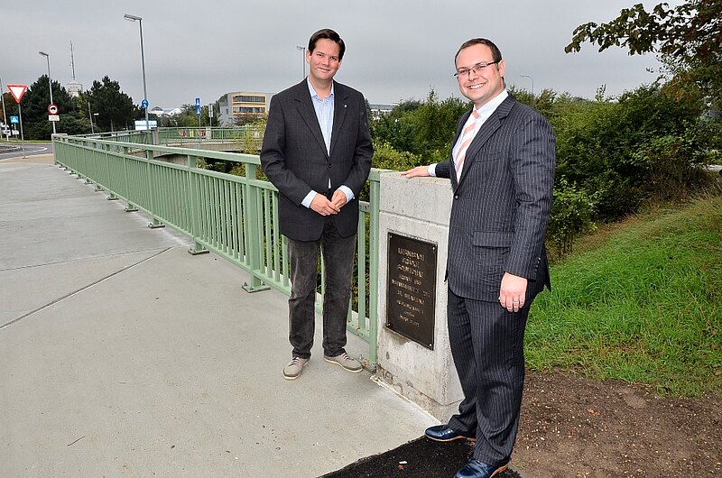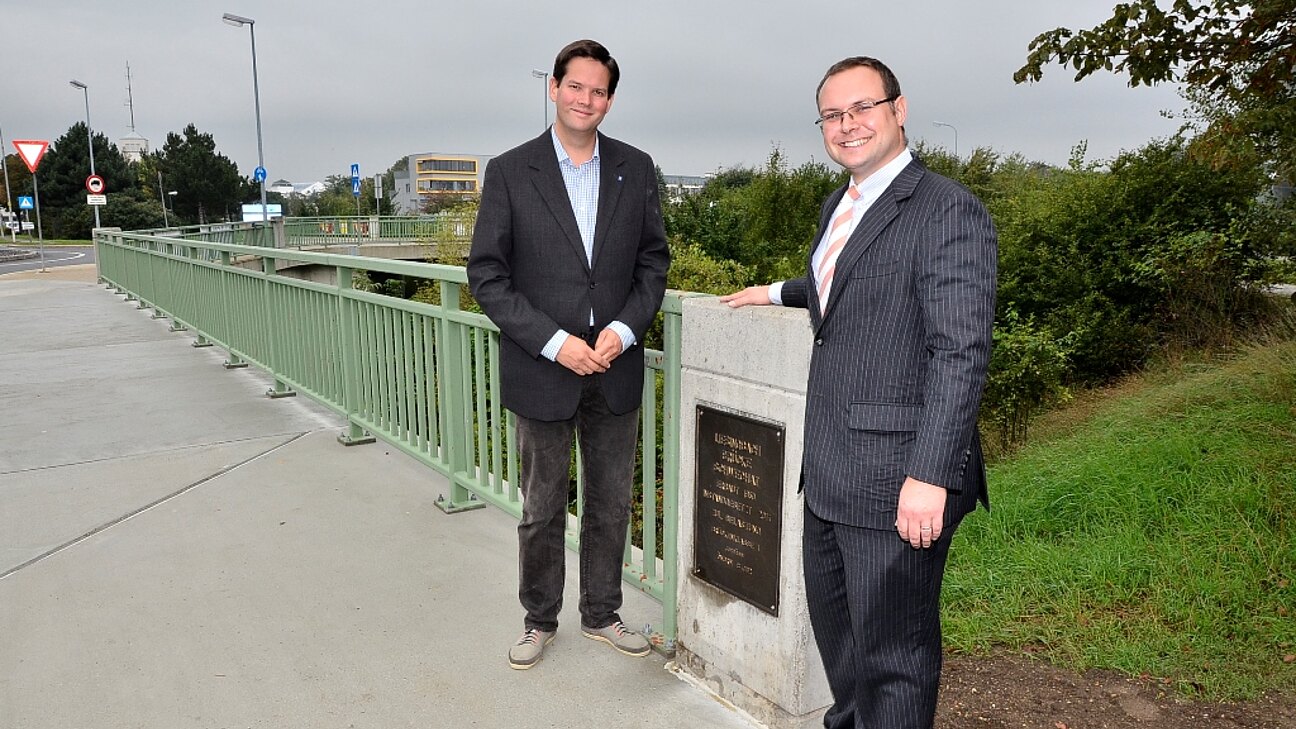 Abgeordneter Lukas Mandl und Gemeinderat Alexander Edelhauser freuen sich darüber, dass die Erneuerung der Liesingbach-Brücke in Schwechat abgeschlossen ist und das Land Niederösterreich die Kosten von 260.000 Euro zur Gänze trägt. „Das ist wichtig für die Sicherheit aller Verkehrsteilehmerinnen und Verkehrsteilnehmer“, so die beiden.