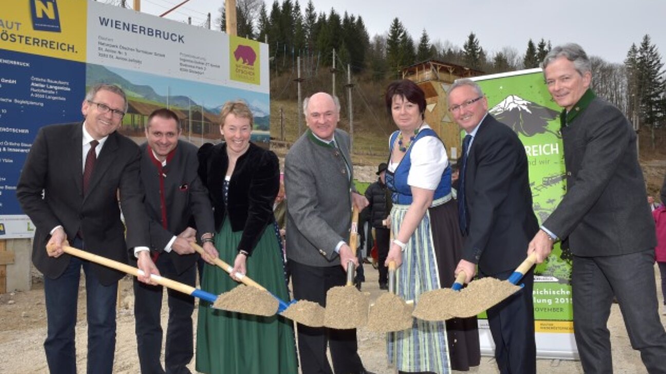 In Wienerbruck erfolgte der Startschuss für den Bau eines neuen Naturpark Campus, der als modernes Basislager für eine Eroberung der Alpen dienen soll. Mag. Andreas Purt, Geschäftsführer der Naturpark Ötscher-Tormäuer GmbH, sprach von einem "touristischen Produkt", das vier Bereiche abdecken solle. Erste Station ist das neue Betriebszentrum Laubenbachmühle in Frankenfels, das die Geschichte der Menschen im Alpenraum erzählt. Mit der Mariazellerbahn geht es nach Wienerbruck, wo der neue Naturpark Campus zu einem Rundgang einlädt und im Neubrucker Töpperschloss geht es um die Innovationskraft der Alpen. Dank seines gewaltigen Naturraumes sei der Naturpark Ötscher-Tormäuer nicht nur der größte Naturpark Niederösterreichs, sondern auch der eindrucksvollste, so Purt.