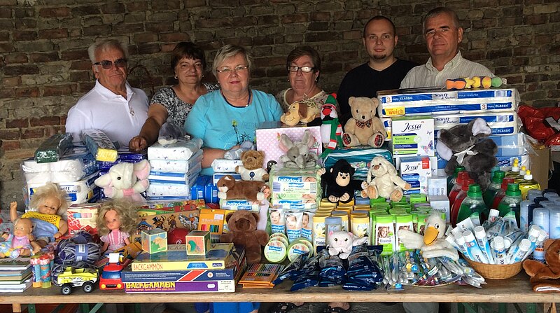 In kurzer Zeit wurde von ihnen und befreundeten Personen ein beachtlicher Betrag zur Verfügung gestellt. Samstag am Nachmittag kaufen die Gemeindeparteiobfrau der ÖVP und Obfrau des Seniorenbundes Zwölfaxing Ulrike Holzer und ihre Seniorenbund-Stellvertreterin Adelheid Fuchs die benötigten Sachen ein. Erforderliche wichtige Toilette Artikel für Erwachsene, Kinder und Babys, Windeln, Waschpulver, Geschirrspülmittel, WC Papier, Taschentücher und vieles mehr. Holzer: „Ein Dank gilt auch den Damen des Flohmarktes Zwölfaxing, die sofort bereit waren, Puppen, Stofftiere, Spiele für Erwachsene und Kinder zur Verfügung zu stellen. Einige Familien, die von unserem Vorhaben erfuhren, brachten Taschen mit Baby- und Kinderbekleidung sowie Wolle samt Zubehör“.