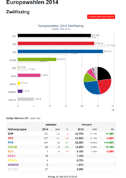 Wahlergebniss EU Wahl Zwölfaxing