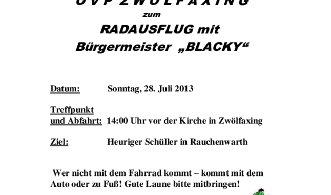 Auch heuer findet wieder der alljährliche Radasuflug der OVP Zwölfaxing…