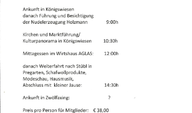 Ausflug der NÖ´s Senioren - Ortsgruppe Zwölfaxing am 5. Juli nach Königswiesen
