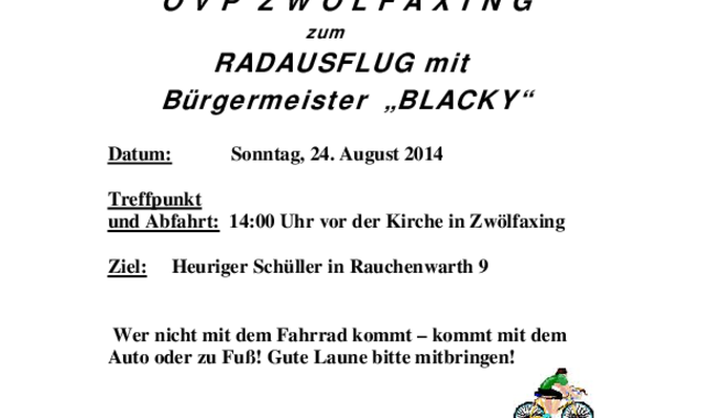 Einladung - Radausflug der ÖVP Zwölfaxing